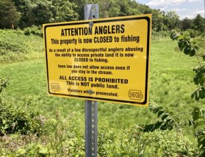Public access to Waterloo Creek below Bee Bridge is no more. Larry Murphy and I were there today and watched the DNR put up the sign. According to the DNR, two fly fishermen had parked their truck blocking the land owner access. When he went and asked them if they would move the truck so he […]